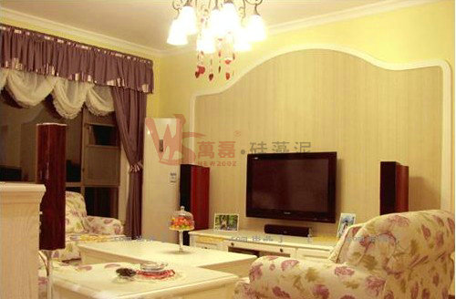 四、硅藻泥電視背景墻效果非常符合聲學(xué)原理。硅藻泥的微孔和肌理具有雙重降噪功能。硅藻泥的微孔能夠吸音降噪,降低回響;而其凸凹的肌理能夠?qū)β曇羝鸬铰瓷渥饔?,讓音?lè)更加迷人。這就是許多大劇院和會(huì)議廳用硅藻泥進(jìn)行裝修的原因之一。